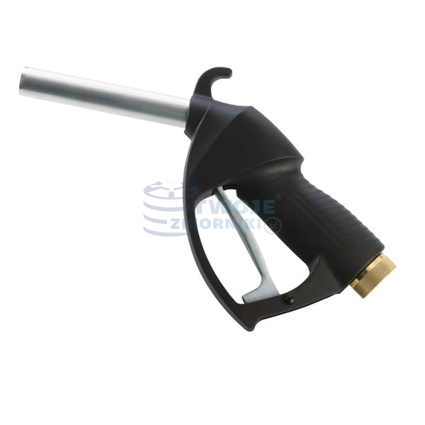 Manualny pistolet nalewowy do ON o przepustowości do 120 l/min. Pistolet zakończony jest złączem obrotowym 1", do którego podłącza się wąż dystrybucyjny. Pistolet bez automatycznego odcinania nalewania.