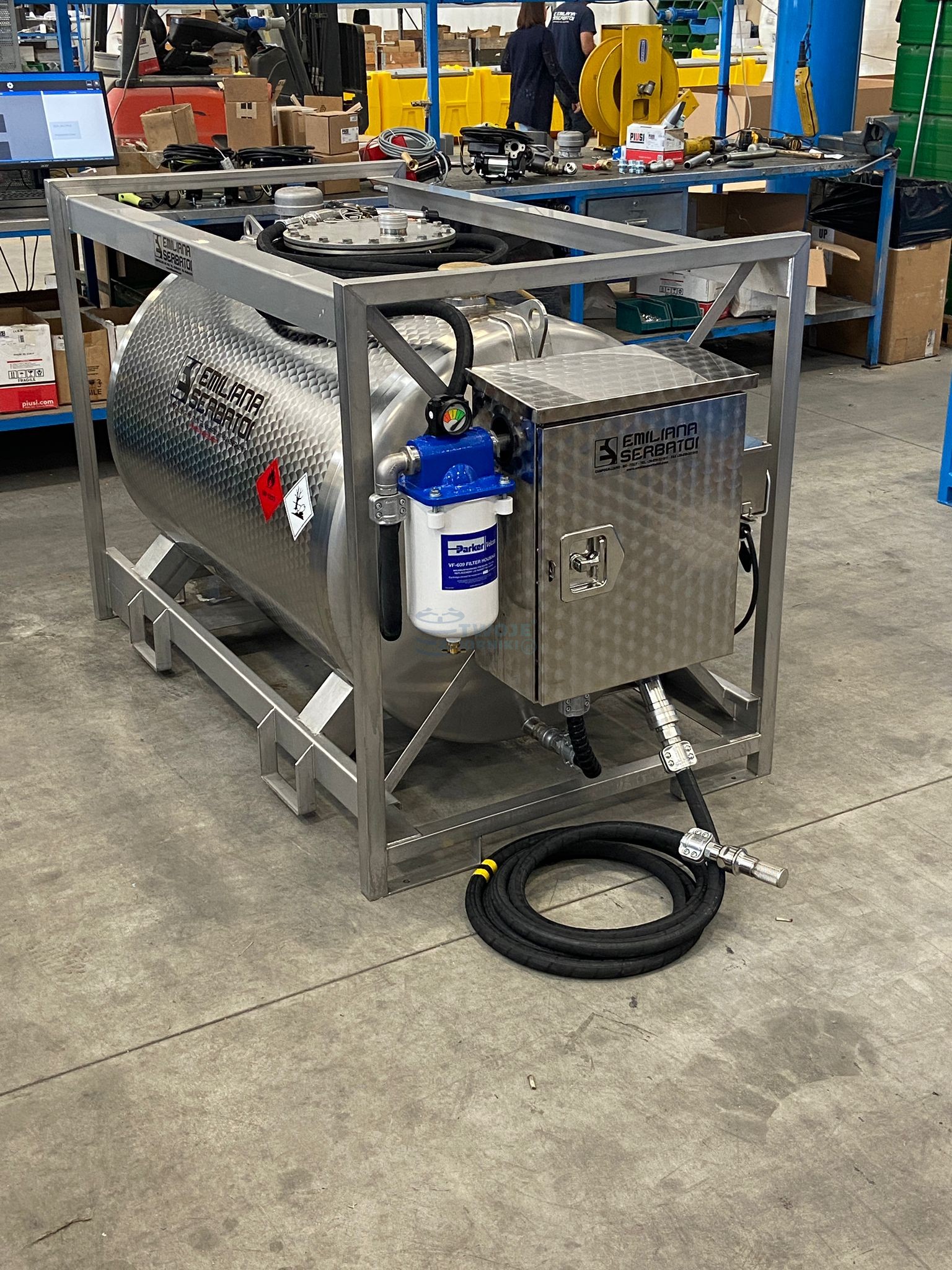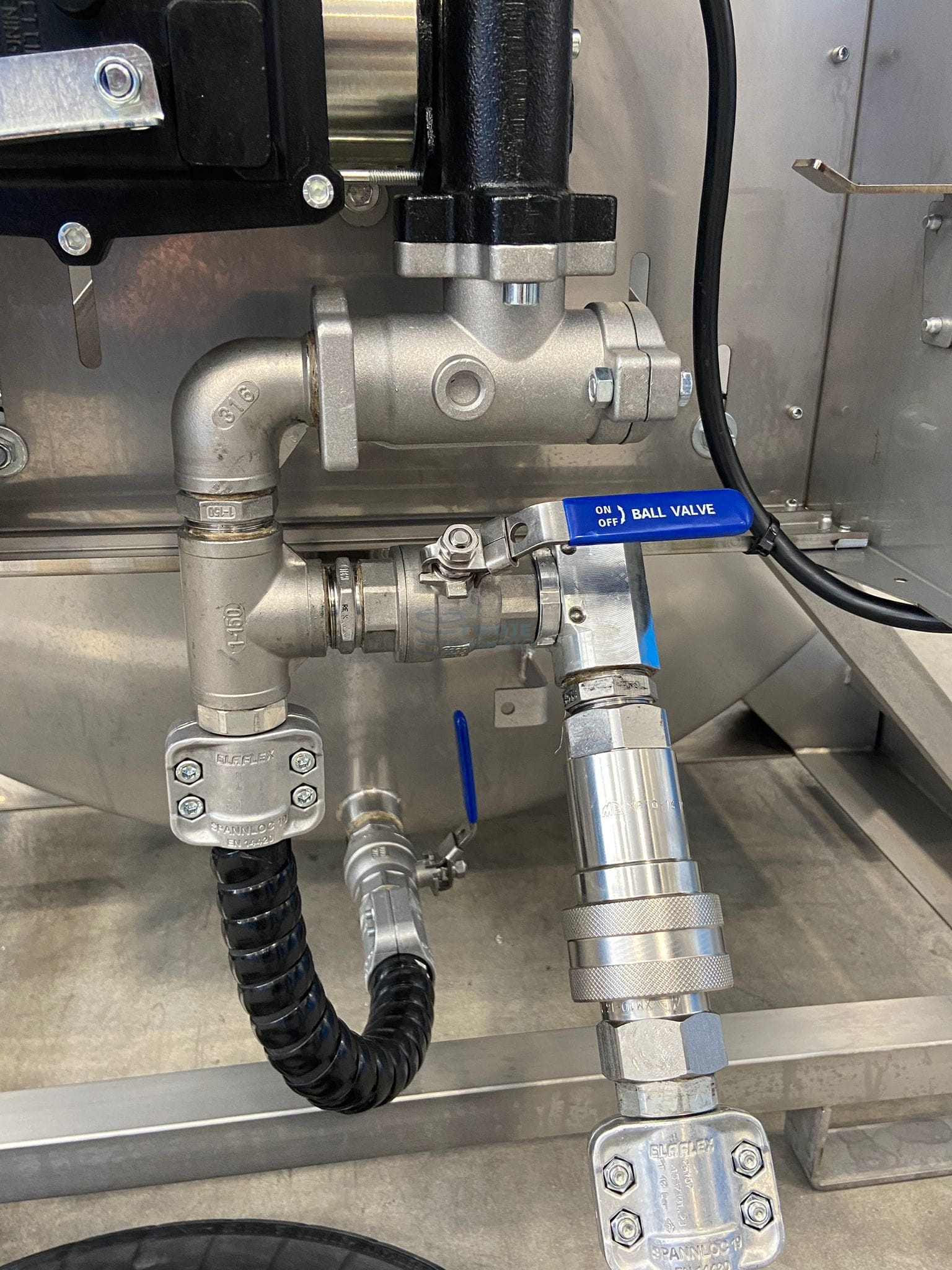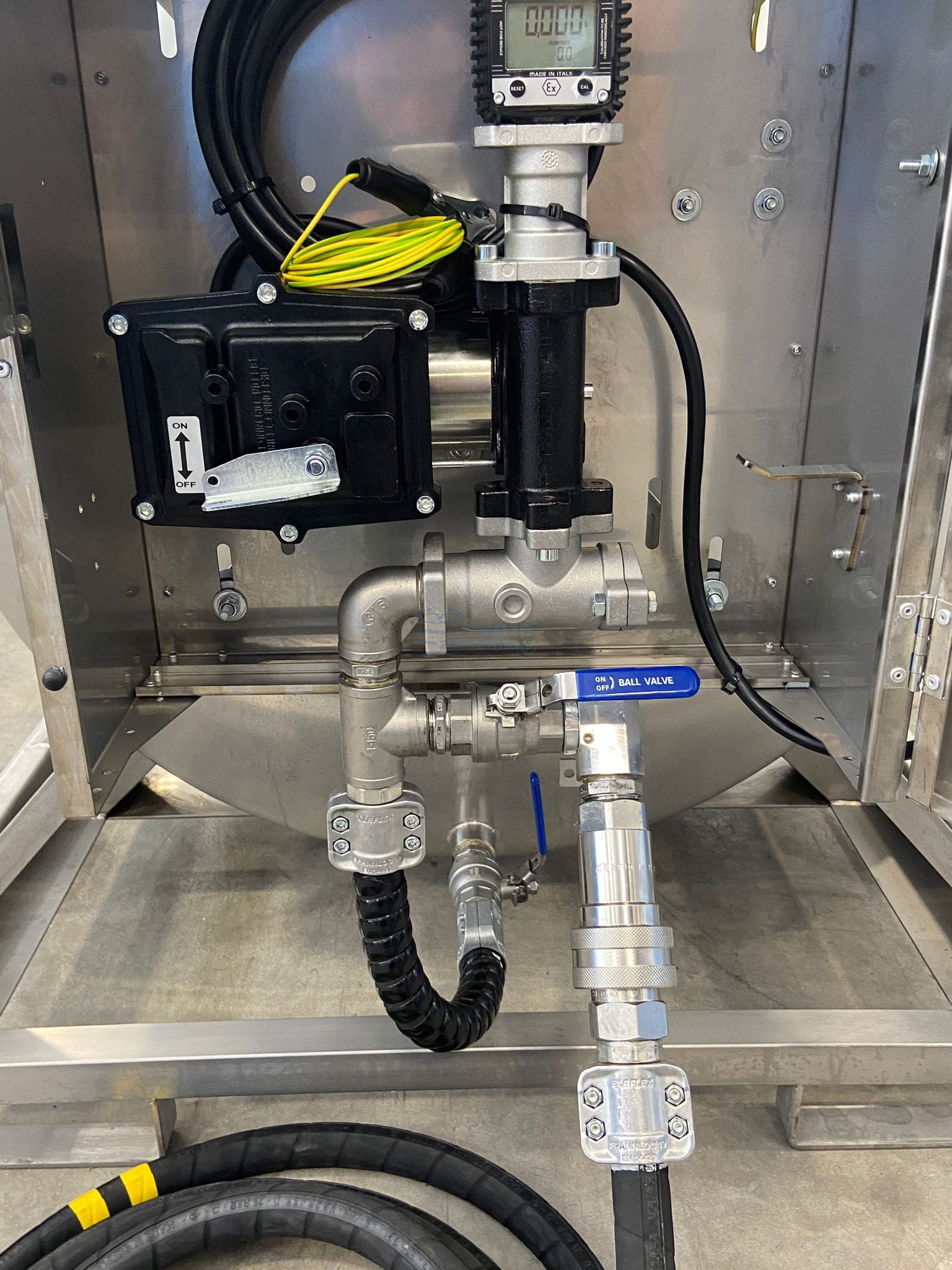 - zamykana na kluczyk szafka na układ dystrybucyjny ze stali nierdzewnej przymocowana na stałe do zbiornika.