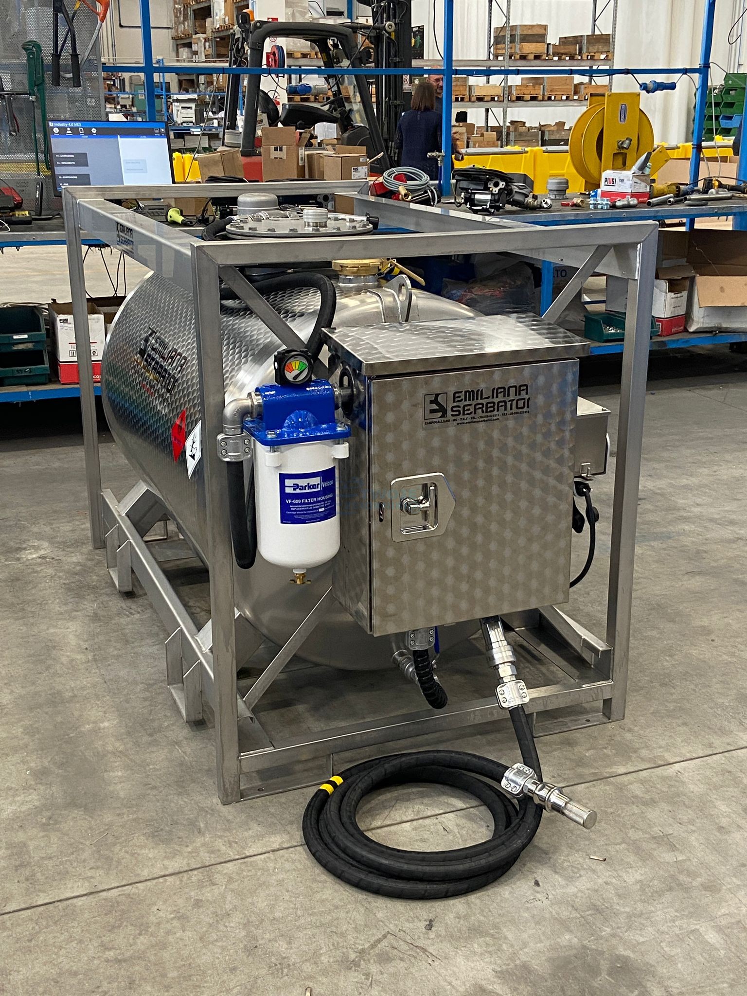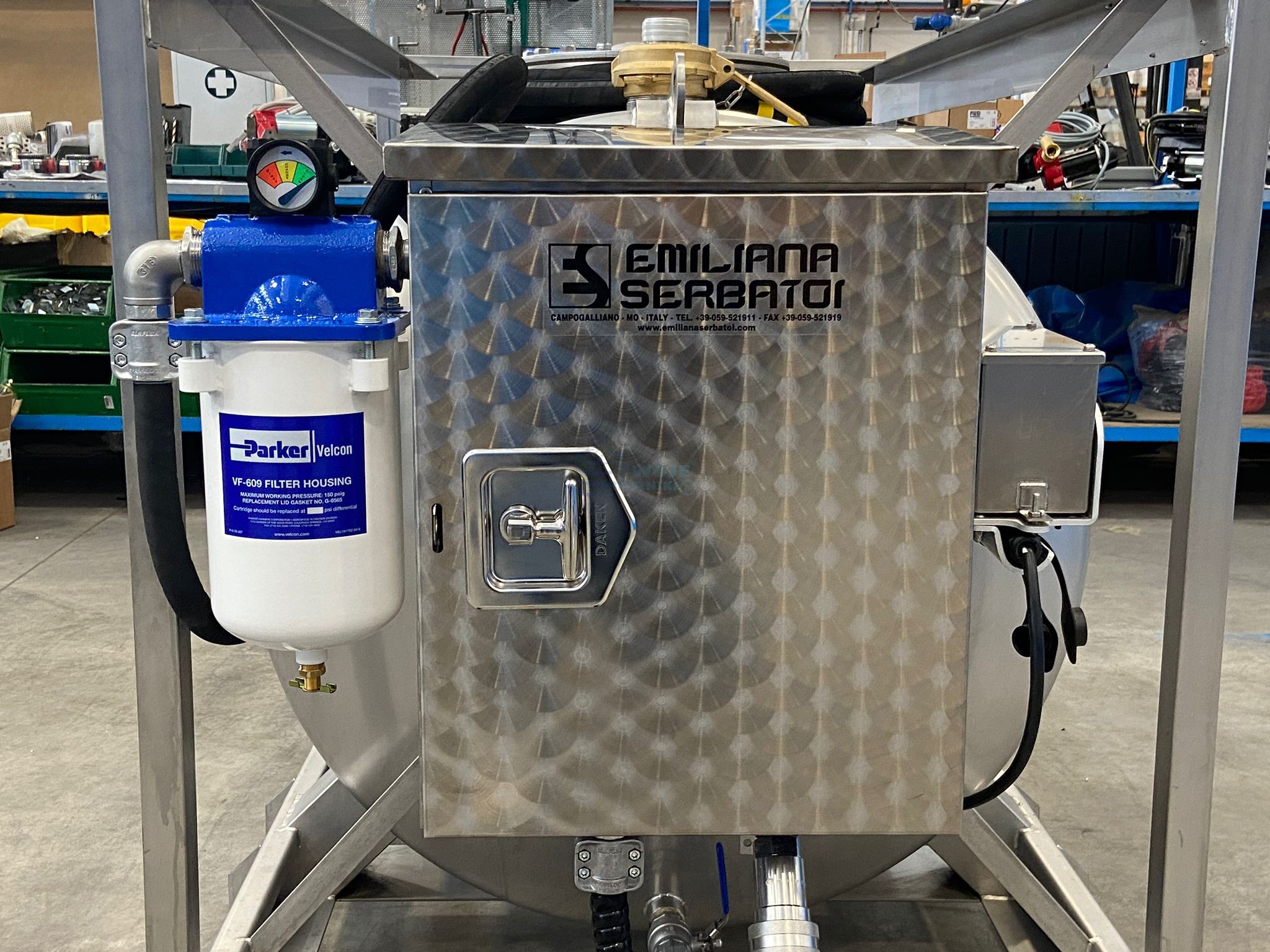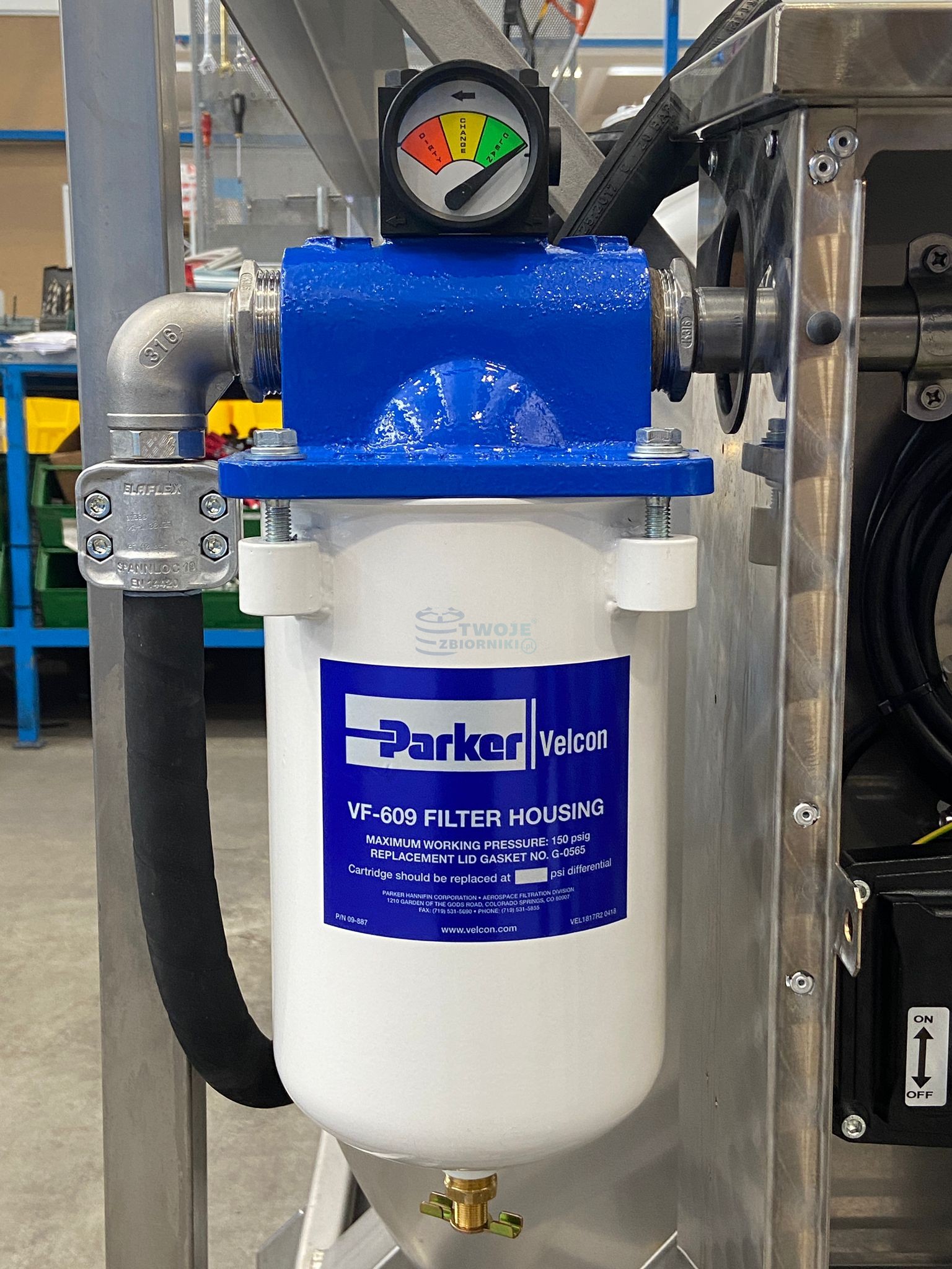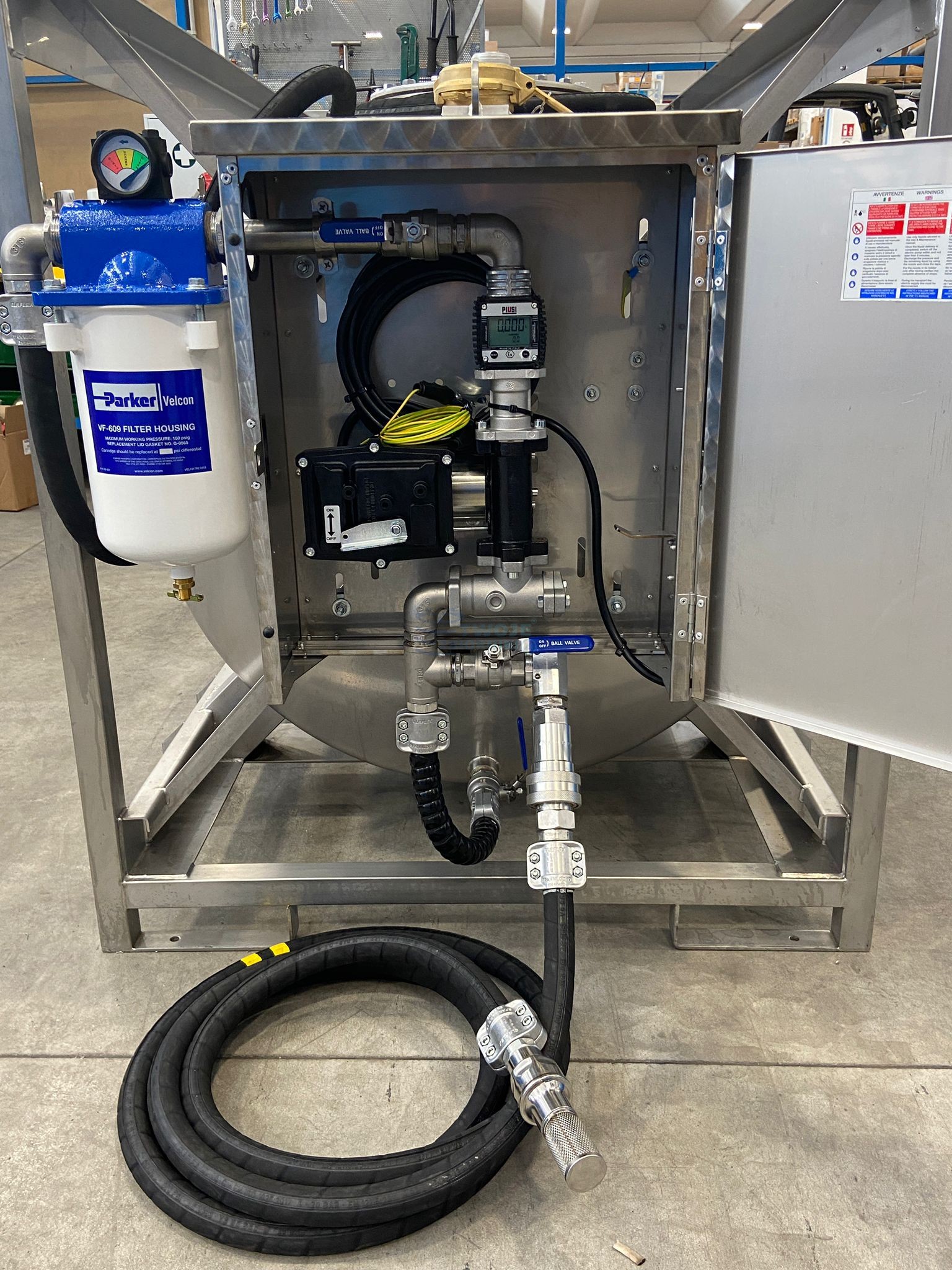 - zamykana na kluczyk szafka na układ dystrybucyjny ze stali nierdzewnej przymocowana na stałe do zbiornika.